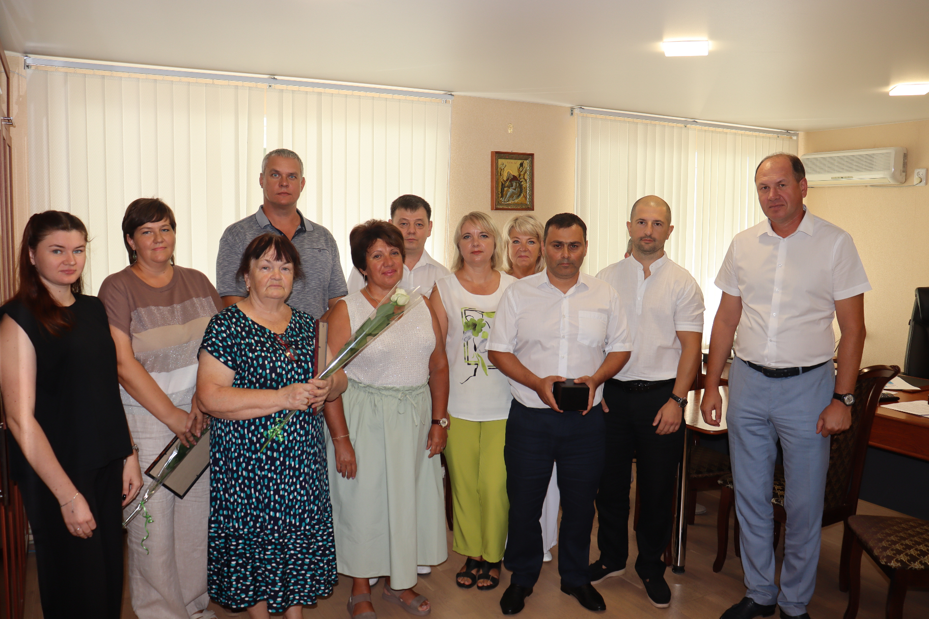 С начальником финансового управления администрации Олегом Чудиком и коллегами поздравили и вручили сотрудникам администрации Сакского района, сельских поселений награды республиканского уровня, ценный подарок от Главы РК - часы заместителю начальника бюджетного отдела финансового управления администрации Армену Аракеляну, почетную грамоту Совета министров РК - заместителю начальника финансового управления Татьяне Пахомовой, почетную грамоту Министерства финансов Республики Крым бухгалтеру администрации Штормовского сельского поселения Инне Септаровой. Также вручили почетные грамоты администрации Сакского района и пожелали здоровья, благополучия, успешного воплощения жизненных планов.