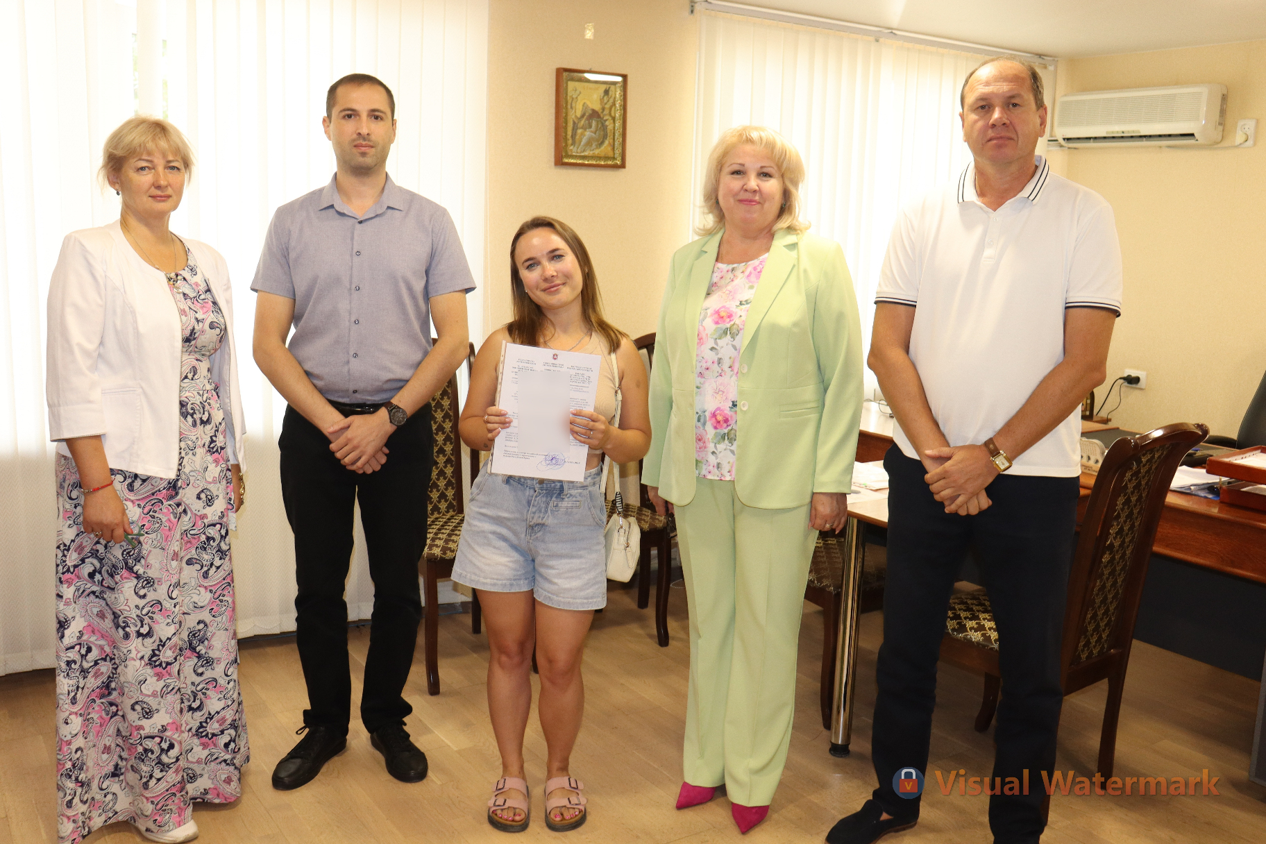 На днях глава администрации Сакского района Владислав Хаджиев вместе с заместителем главы администрации Сакского района Светланой Дорошенко вручили сертификат на выплату на приобретение благоустроенного жилого помещения в собственность или для полного погашения кредита (займа) лицу из числа детей-сирот, детей, лишенных родительского попечения Сакского района.
